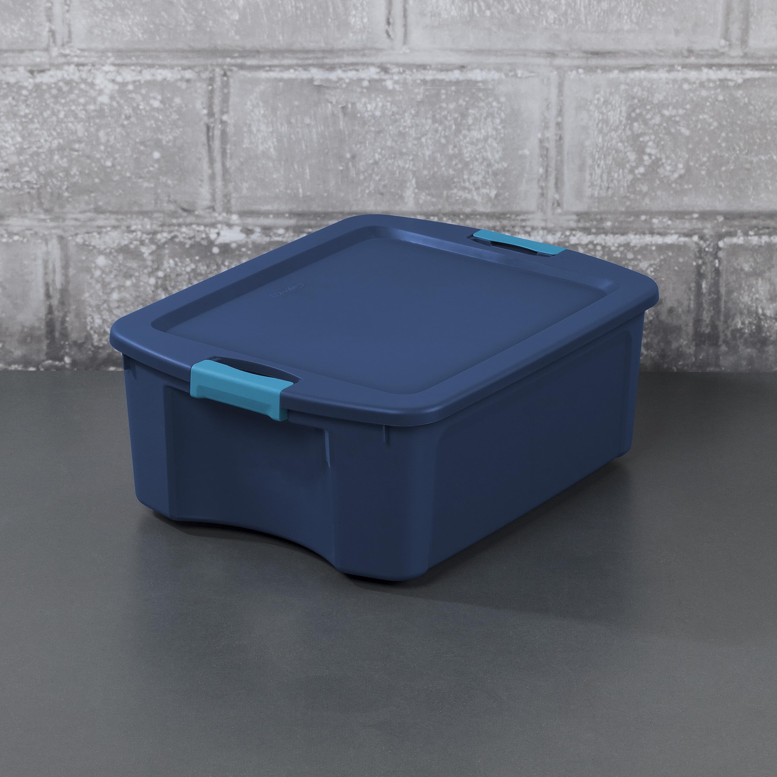 Sterilite 12 Gal Latch and Carry, Stackable Storage Bin with Latching Lid, Plastic Tote Container to Organize Closets, Blue with Blue Lid, 6-Pack