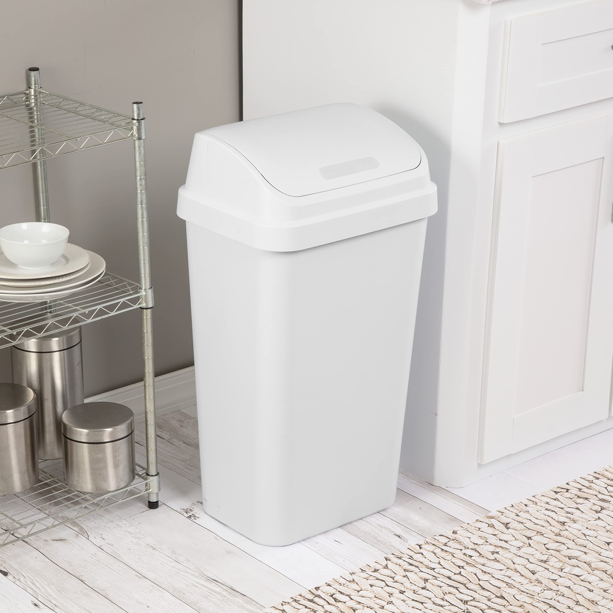 Sterilite 13 Gallon Swing Top Wastebasket with Lid, Large Plastic Trash Can for the Kitchen & Mudroom, White Lid and Base, 4-Pack