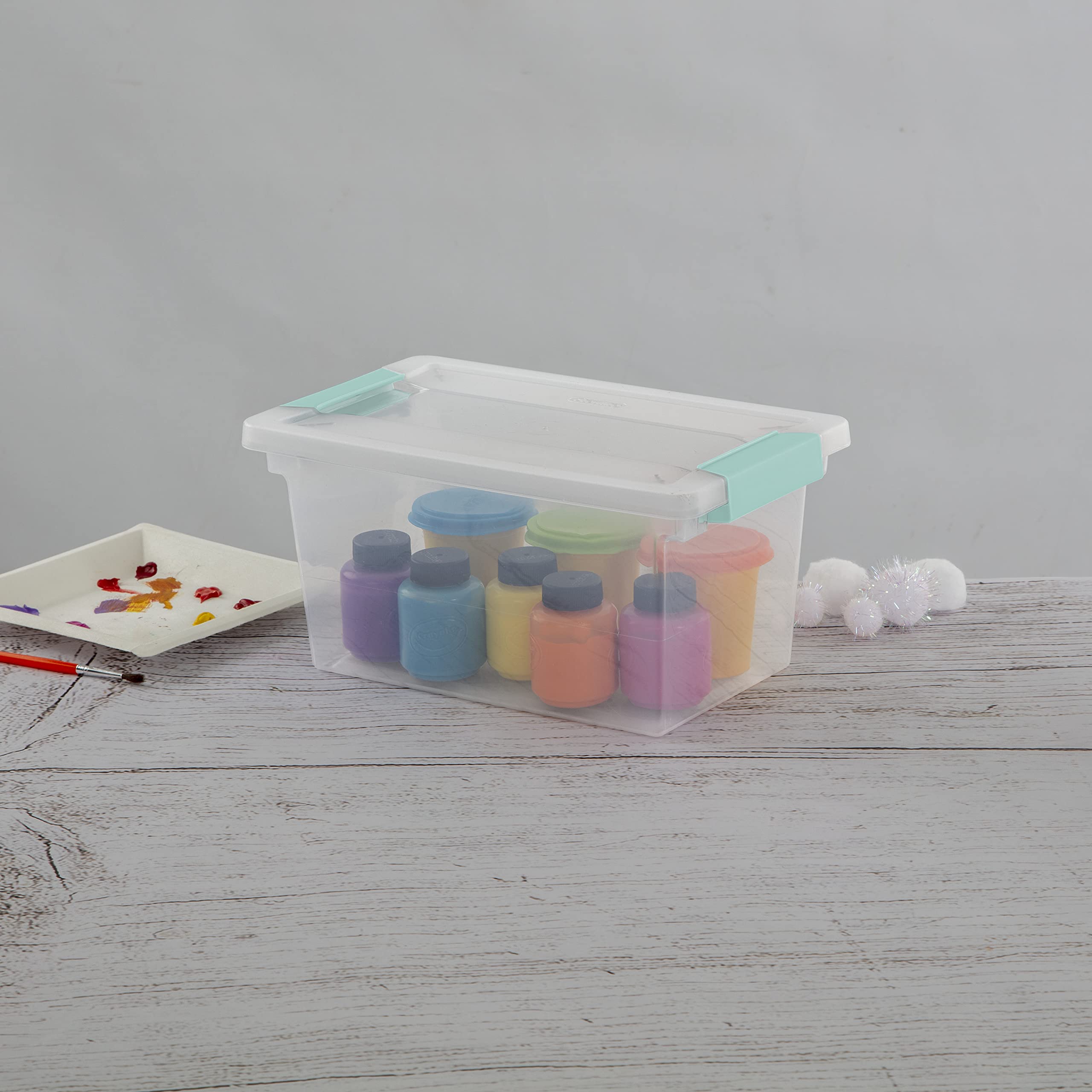 Sterilite Medium Clip Box, Stackable Small Storage Bin with Latching Lid, Plastic Container to Organize Office, Crafts, Clear Base and Lid, 4-Pack